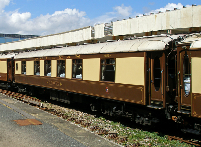 Many of the Pullman vehicles of the VSOE fleet have been re-classified since restoration, but ''Audrey'' remains as a 20-seat Kitchen Car, a designation it has carried since its 1932 building in Birmingham. The carriage is seen basking in the afternoon sun at Folkestone Harbour. © David Glasspool