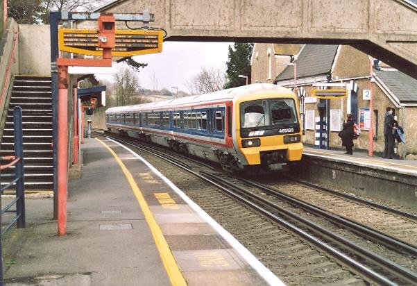 A southward view on 31st March 2006, with No. 465193 emerging on the left, reveals the SR