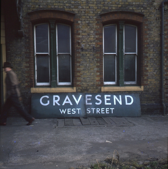Two halves of the station's former nameboard were to be found on the platform floor. The station had for long been known as ''Gravesend West'' by this time, the ''Street'' suffix having been dropped as far back as 26th September 1949, but the nameboard still harked back to the old title. This nameboard can be seen in the background of the previous photograph. © David Glasspool Collection