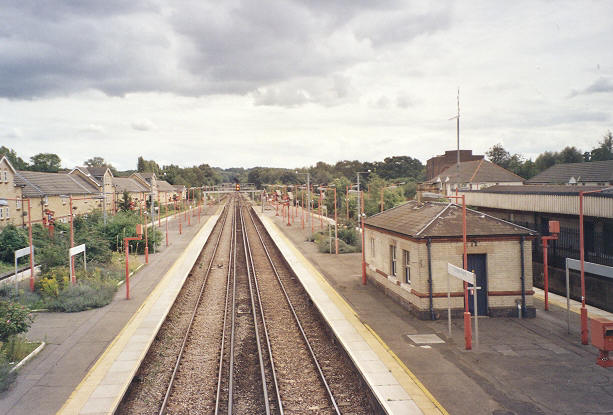 either side of the station. The five storage sidings formerly laid on the land to the left, now occupied
