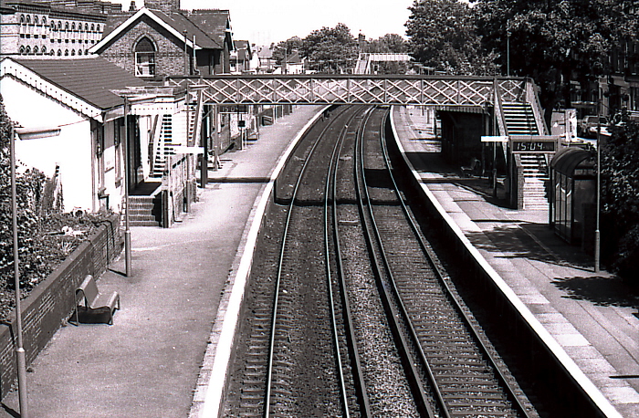 characterful single-storey timber ticket office sandwiched in-between. The lattice footbridge, now lacking its