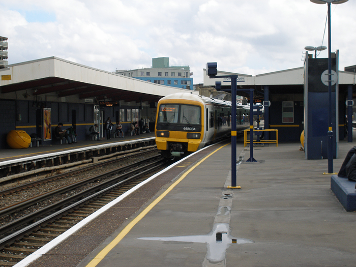 Class 465 No. 465004 is seen Blackfriars-bound at platform 3, upon that part of the station which opened in 1862. The platform canopies date from BR's partial rebuilding in 1948. © David Glasspool