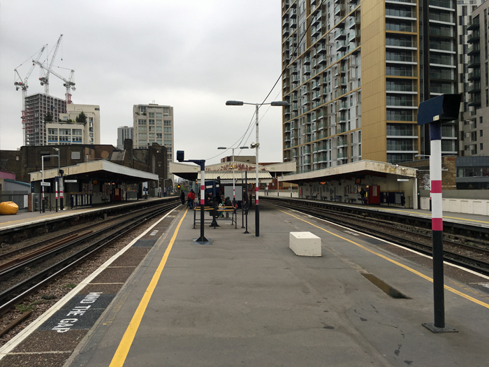 Now in 2016, the skyline shows its endless evolution, gigantic new developments having appeared on the station's eastern side. The colour scheme was that of former franchise "First Capital Connect". © David Glasspool