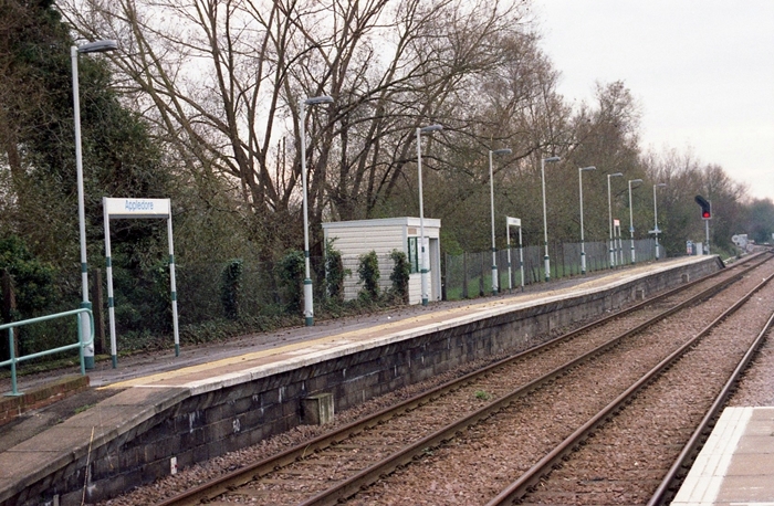 Passenger services to Lydd and New Romney eventually ceased on 6th March 1967, but track remained in place between Appledore and Dungeness, although all stations were closed along the route. The branch to Dungeness, however, gained a new lease of life as a dedicated goods line: aggregate trains ran from a stone terminal at Lydd, and since 1975, nuclear flask trains have operated from the well-known power station out on Europe's largest area of open shingle. On 30th September 1979, the stretch of line between Appledore and Ore was singled, but the former retained two platforms to serve the double-track from Ashford. A couple of years before this, the track foot crossing between platforms was done away with and passengers were instead required to use the level crossing. A footpath had been carved out of the vegetation on the ‘’down’’ side to provide direct access to this platform. In 1993, the 1954-opened signal box was closed and subsequently demolished as a result of a new panel coming into use at Ashford – by 2001, the latter controlled an area stretching all the way to Dartford.