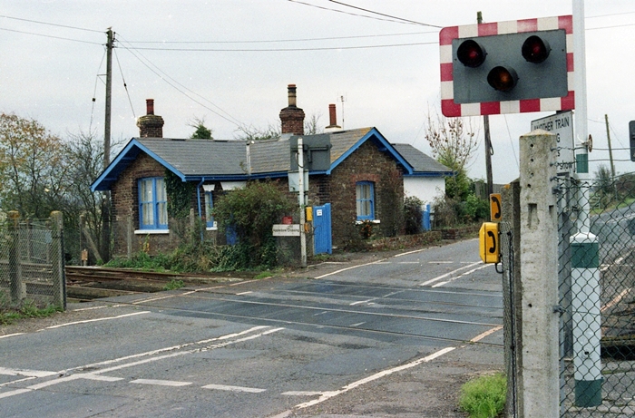 The level crossing is worked by automatic barriers, although these are controlled by a signalling centre at Ashford, rather than the former crossing building seen here, which incidentally is now a house. When Appledore still had an operational signal box, this crossing used traditional gates. © David Glasspool