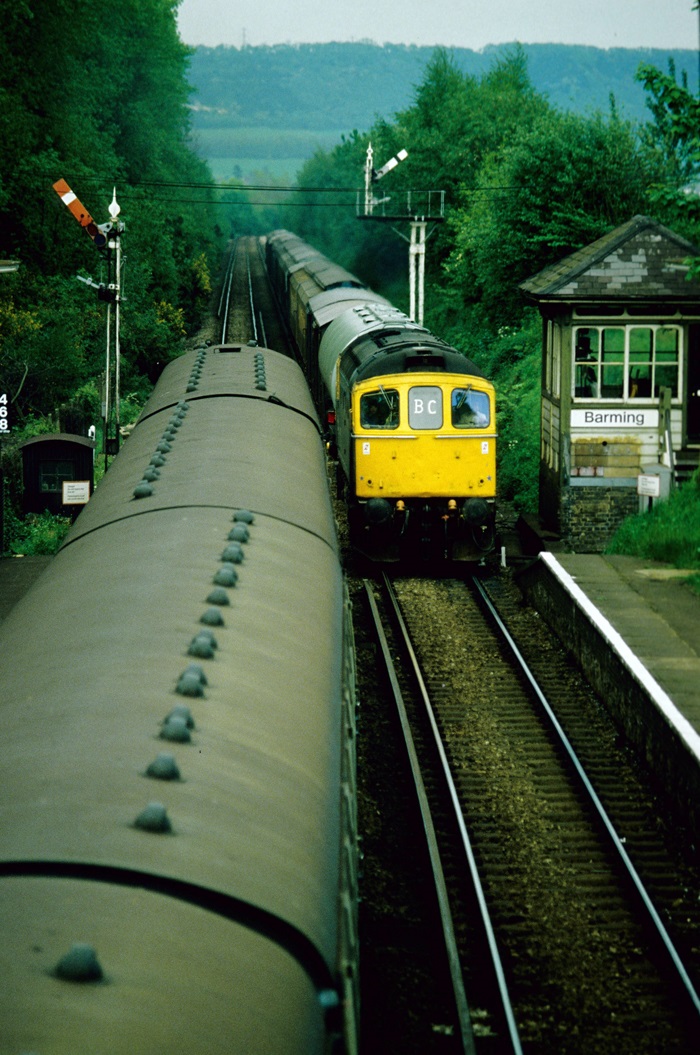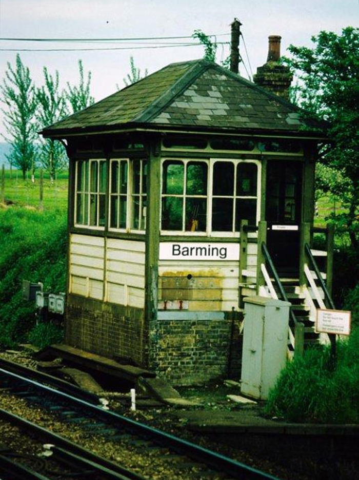 On 2nd July 1939, electric services commenced from Otford Junction to Maidstone East (the original Bat & Ball branch having been electrified some four and a half years earlier). It was also in 1939 that Barming acquired one of the SR’s unenviable prefabricated concrete footbridges, this superseding the existing track foot crossing. The majority of stations along the Swanley to Ashford via Maidstone route received these – indeed, Eynsford lost is pleasant lattice footbridge in favour of one. Also in connection with the electrification, the platforms were lengthened in prefabricated concrete at their western ends. Little else changed at this isolated stop until after nationalisation. The first major act was the closure of the goods yard in December 1960, one of the earliest of such facilities to cease operation on the whole Swanley to Ashford route, second only to Kemsing. A significant feature which the station managed to retain was the ‘’up’’ side timber waiting shelter. During the 1970s, and indeed, even right up to, and including, the 1990s, many of these delightful wooden structures were done away with in favour of featureless – and inferior - bus shelters. The signal box was not to last, however: this was decommissioned in April 1982, when the operational area of Maidstone East panel was extended, concurrent with the abolition of semaphore signals. By this time, the concrete lampposts had given way to metal equivalents and the former goods yard had become a car park.