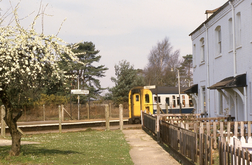 The line was electrified from Brookwood through to Branksome (Bournemouth) in 1967, the full accelerated time coming into use on 10th July of that year. What this did provide Beaulieu Road for the first time was a fixed electric supply source, advantageous for an unstaffed station. This enabled the platforms to be electrically-lit, the power being sourced from the signalling supply (the then new colour light signalling system had been commissioned on this section of line on 23rd October 1966). An advancement this may have been, the subsequent years were not so kind to the station and as per Lyndhurst Road, which had similarly ceased to be staffed, structural cut-backs on the platforms occurred during the 1970s. The waiting rooms and canopies of 1895 vintage on both platforms were demolished and replaced by frugal glazed shelters. The Station Master’s house remained and became the residence of the caretaker for the nearby railway cottages, the latter of which by this time had become available for holiday letting.