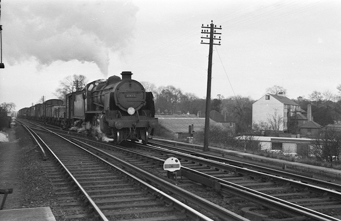 "N" Class No. 31855 is seen from the end of the "down" platform, fronting a mixed freight. The head code tells us that the train has come round the Crayford Spur. At this time, the engine was allocated to the shed at nearby Hither Green. In the background, on the right, is the Old Mill, which was destroyed by fire in 1966, but subsequently rebuilt in 1970. © David Glasspool Collection