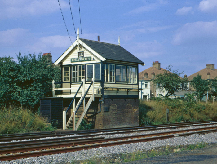 Given that the station was located within a cutting, no room was available nearby for any sidings. As a result, an isolated goods yard was established ¼-mile west of the platforms, this of which began life as a single siding feeding off the "up" line. Overlooking this from the opposite side of the tracks, between which was a trailing crossover, was an attractive signal box, situated upon a brick base and featuring a gabled pitched roof. This was built by signalling contractor "McKenzie & Holland", and the same firm was used by the SER to signal the entire Bexleyheath line. The SER had, until now, carried out most of its own signalling work, but such was the amount required by the 1890s that the company increasingly used contractors. A ground-level timber cabin also existed at the eastern end of the "up" platform, at which point there was another trailing crossover between the running lines.