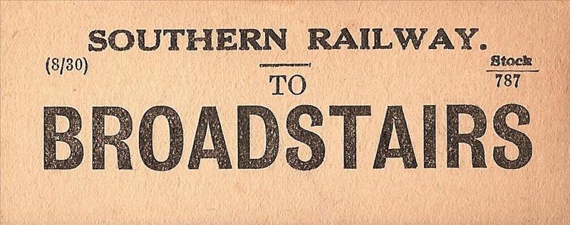 A Southern Railway luggage label to Broadstairs. ''Stock 787'' was applied to all SR luggage labels, and was a practice inherited