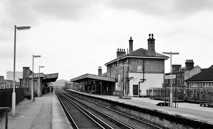 Additional electrification works included remodelling of the goods yard site on the "down" side to incorporate a passing loop in-between the sidings and running lines. This would allow slow trains to be moved out of the way of non-stop Dover boat services. Goods traffic at the "East" station remained in a large form until 1965, its withdrawal coming on 15th June of that year when freight handling was transferred to Canterbury West. The yard’s sidings were not formally decommissioned, however, until 15th April 1969. Except one siding to the east of the "up" platform, all tracks on this side were taken out of use on 17th July 1972, and despite the electrification of 1959, the Faversham to Dover section of the "Chatham" line remained controlled by semaphore signals.