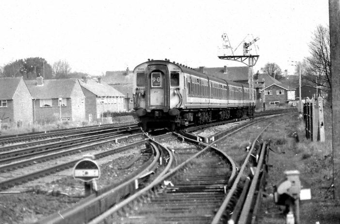 4 Cep No. 1590 was seen departing Canterbury West for Ramsgate, as it approached the level crossing which resides approximately a third of a mile north of the station. The fourth track on the far right of this view forms a station avoiding loop, passing behind the ''down'' platform. © John Horton