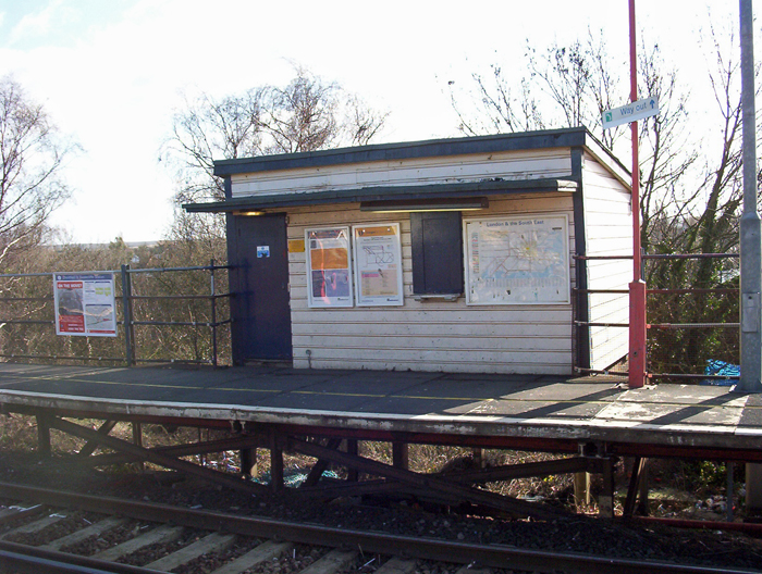 For a halt, the passenger facilities provided at Chestfield & Swalecliffe were not at all bad: at its peak, there was a timber ticket office at the London end of each platform, and a copious timber waiting shelter also featured on either side. The latter were enclosed, complete with windows, a door and, at least in the earlier years, a coal fire for those cold winter days! Access to the platforms was gained via a flight of concrete steps and a wooden ramp, positioned in-between the ticket office and waiting shelter on either side. The 1970s marked considerable change at this station: the prefabricated SR concrete platforms were rebuilt using bullhead rail as the supports, and wooden planks as the surface. The opportunity was also taken at this time to move platform access from in-between the shelters and ticket offices, to the London end of the layout, beyond the latter structures. The foundations of the old entrance staircases can still be seen today, if one carefully observes the site through the brambles. The then new wooden planked platforms could break the boredom when waiting for a train: a solid ice coating on a frosty morning would allow the bold to skate! This was no longer possible from 1998 onwards, when an asphalt surface was laid over the wooden planks (excepting the most outer planks, painted in white). Even greater change had occurred previously, however: the ''down'' side ticket office suffered fire damaged in 1989, caused by local yobs, and in 1991 this and the delightful clapboard waiting shelters (which had since lost their doors and windows) were demolished. The destroyed ticket office was formerly twice the size of the remaining ''up'' structure, and even had a cooker inside. The clapboard structures were unsurprisingly replaced by the then (and seemingly now) customary glazed bus shelters. Palisade fencing arrived in 2003, this simply surrounding the aforementioned bus shelters. Indeed, poor fortunes for this station, even more so considering the fact that local yobs still hang around it at night.