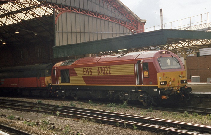 No. 67022 is seen at Bristol Temple Meads fronting a train for which it was originally intended: one carrying letters and parcels. These formations, which used traditional TPO stock based on the BR Mk 1 profile, last ran in January 2004. © David Glasspool Collection