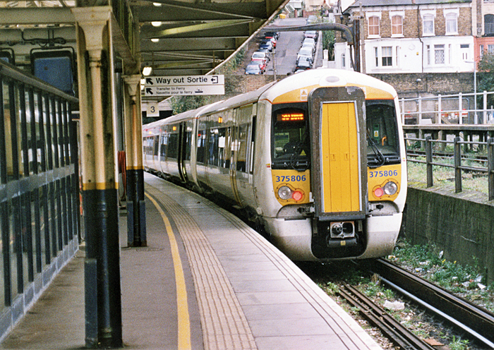 No. 375806 is seen at platform 3 of Dover Priory, showing the unit number below both cab windows. These units use twice the amount of electrical current compared to their Mk 1 predecessors. The cost of infrastructure upgrade for the new fleet was estimated at £100 million. Since the units were being delivered faster than the progression of upgrade work, they were put into secure storage at Ministry of Defence locations. © David Glasspool