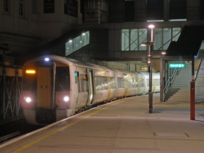 At about 23:15, No. 375618 is seen ready to depart platform 6 at Charing Cross. The office block above the platforms here was opened in 1992 and the footbridge above the unit was commissioned later the same decade. © David Glasspool