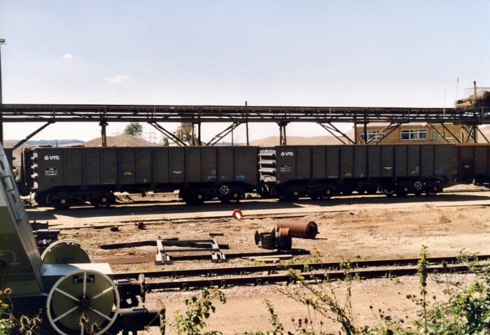The third line from the previous picture is seen once again, with a clearer side-on view of what can now be deciphered as VTG JUA-D type wagons. The end of the Brett hopper wagon line can be seen in the immediate foreground, on the left. © David Glasspool