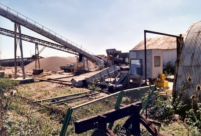 Now nearing the rear of the yard, we see more of the same wagon type and plenty of gravel conveyance apparatus, in addition to piles of gravel. © David Glasspool