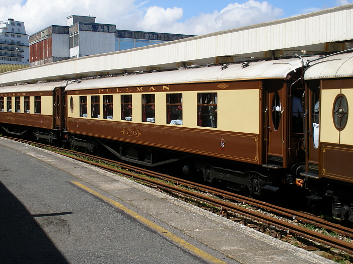All vehicles of the 1951 batch were fitted with LNER Gresley-designed four-wheel bogies, and the lavatory windows were now square with rounded corners, rather than oval, as per earlier carriages. Cygnus remained as part of the ''Golden Arrow'' fleet for the rest of its operational career. In 1968 the vehicle emerged, after overhaul, in British Rail's ''Reverse'' Blue and Grey livery, which involved applying blue on the upper body side, around the windows, and grey to the lower body side. Pullman vehicle ''Leona'' had been similarly treated in the previous year, but later repaints in 1969 saw the application of the more conventional Corporate Blue and Grey livery, as pioneered on main line coaching stock from 1965 onwards. The name ‘’Cygnus’’ was no more, and where this title formerly resided was now proclaimed ‘’GOLDEN ARROW’’. The remaining Pullman vehicles within the Golden Arrow formation (numerous Second Class BR Mk 1 carriages having by this time appeared in the service) were now simply designated by their original schedule numbers: ‘’Cygnus’’ subsequently became No. S308S. The Pullman carriages of the Brighton Belle sets had received identical treatment whilst undergoing overhaul at Eastleigh Works during the same period. No. S308S last ran in scheduled BR service on 30th September 1972, as part of the final Golden Arrow service between Victoria and Dover Marine. It was immediately dispatched to sidings at Brighton for storage, pending a decision on its future use. Initially, it was mooted that the carriage could serve as a static restaurant, but in 1973 it was purchased by Scottish & Newcastle Breweries, and subsequently left Sussex for Tyneside. Spending three years in store there, it was transferred to the North Yorkshire Moors Railway in 1976. It was based on the latter for barely a year when, in 1977, it was purchased by the VSOE company and transferred to Stewarts Lane. In 1979 it was transported by road to the 10,000 square foot VSOE workshop in Carnforth for a complete overhaul and restoration programme. This included replacing the square lavatory windows with the earlier oval-shaped variants, and the installation of air braking. As per all other VSOE Pullman vehicles, ‘’Cygnus’’ was completely rewired and provided with Electric Train Heating (ETH). The restored carriage was put on display at London Victoria in November 1981, at the official launch of the VSOE British Pullman.