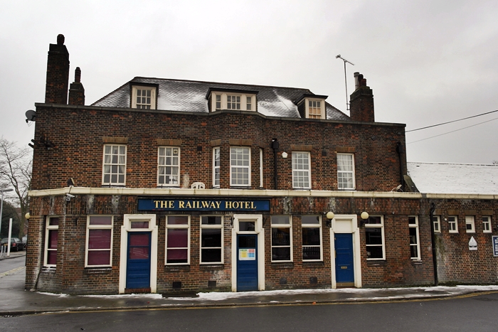 ''The Railway Hotel'' had for long been a familiar sight and convenient watering hole by the station. It always looked cosy when walking by on a cold night, although your author remembers a complete lack of real ales! It closed in spring 2012, to allow the site to be cleared as part of the station rebuilding programme. © David Glasspool