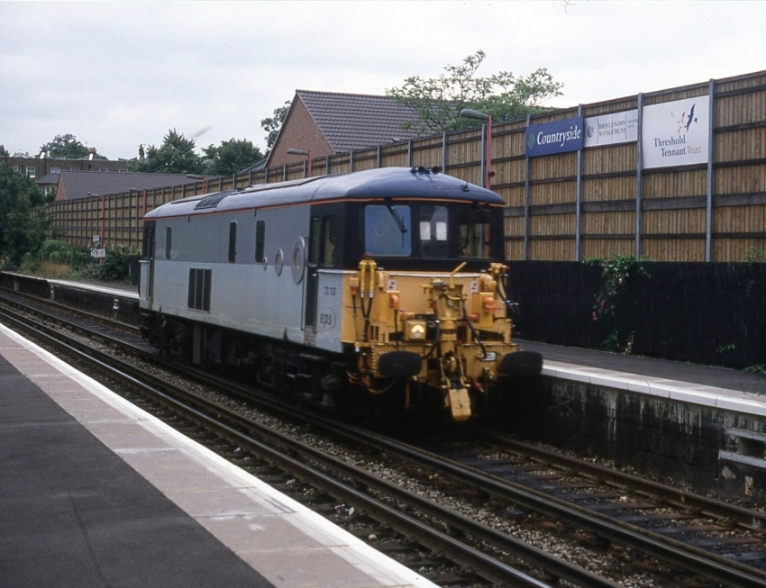 No. 73130 is seen passing through Wandsworth Road, likely on a move between Hither Green and North Pole Depots. The two-tone grey, complete with triple Chunnel roundels and "EPS" logo, suited the class well, albeit worn in combination with rather ugly Scharfenburg couplers. © David Glasspool Collection