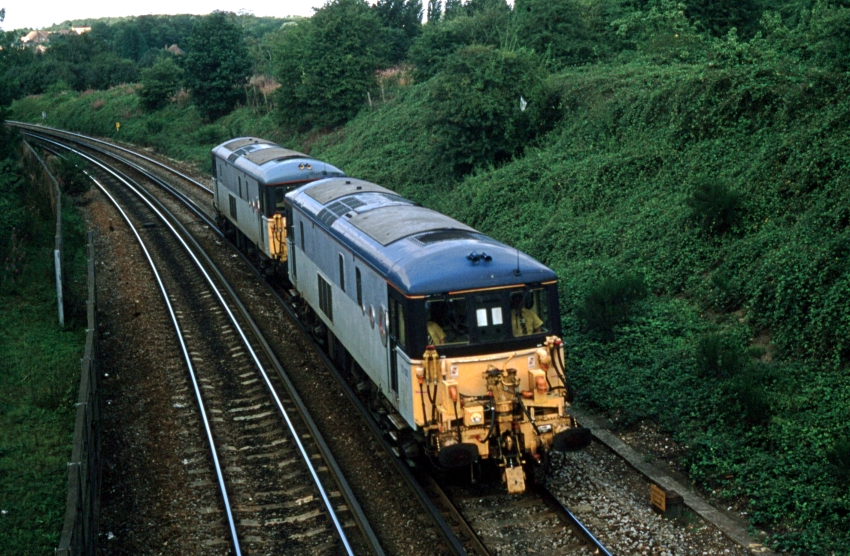 Nos. 73118 and 73130 were taken from BR’s Civil, Mechanical & Electrical Engineering (CM&EE) department in early 1994 to join EPS. They had only been part of the former since 1993, both having received that department’s renowned “Dutch” livery in the same year. No. 73130 had typically been found parked in the sidings adjacent to platform 1 at Brighton. The pair had previously worn variations of InterCity’s “Executive” livery and the names “City of Portsmouth” and “The Romney Hythe and Dymchurch Railway” were carried by Nos. 73130 and 73118 respectively. No. 73130 lost its name when repainted into “Dutch” colours, but No. 73118 retained its plates.