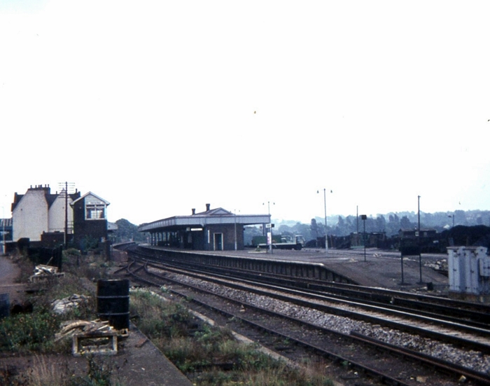 An eastward view of Herne bay shows the remains of the "down" sidings, which were taken out of use on 3rd May 1966. Beyond can be seen the signal box and, behind that, the whitewashed Station Master's house, which was demolished not long after this view was taken. © Roger Goodrum