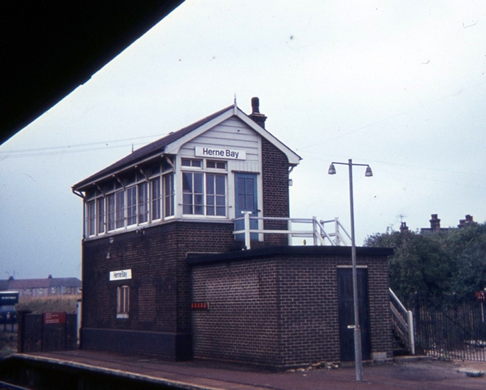 The 1926 signal box was built to a then standard SR design, a virtually identical cabin coming into use at Ramsgate. Adjacent to the signal box, on the right, is the relay room, installed at the time of the Kent Coast Electrification Scheme. These allowed existing mechanical cabins to keep control of sidings after the routes were re-signalled. The signal box closed on 22nd August 1971. © Roger Goodrum