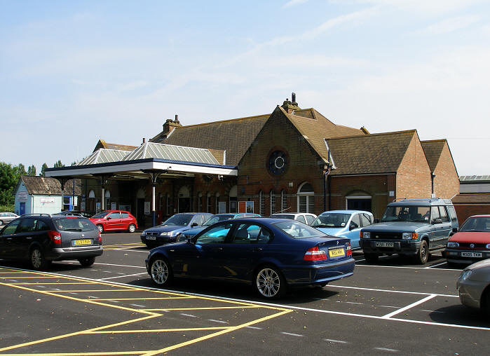 The façade of Herne Bay station is somewhat reminiscent of the design of a traditional Victorian school. Apart from the ground floor windows either side of the canopy, the building is symmetrical. Note the pitched glazed sections of the canopy, mentioned in the main text: the platform canopy once had a succession of four such features. © David Glasspool