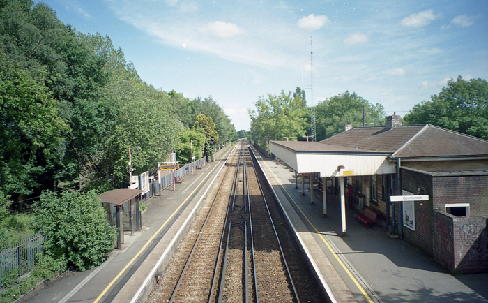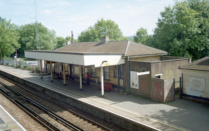 Looking towards Tonbridge, the prefabricated concrete platform extensions of 1960/1961 are in evidence in the background. The brick-built block to the lower right has for long served as the gentlemen's toilets. The canopy valance had a few chunks taken out for signal sighting, and the glazed shelter on the left had replaced a previous one installed by Network SouthEast around 1990. © David Glasspool