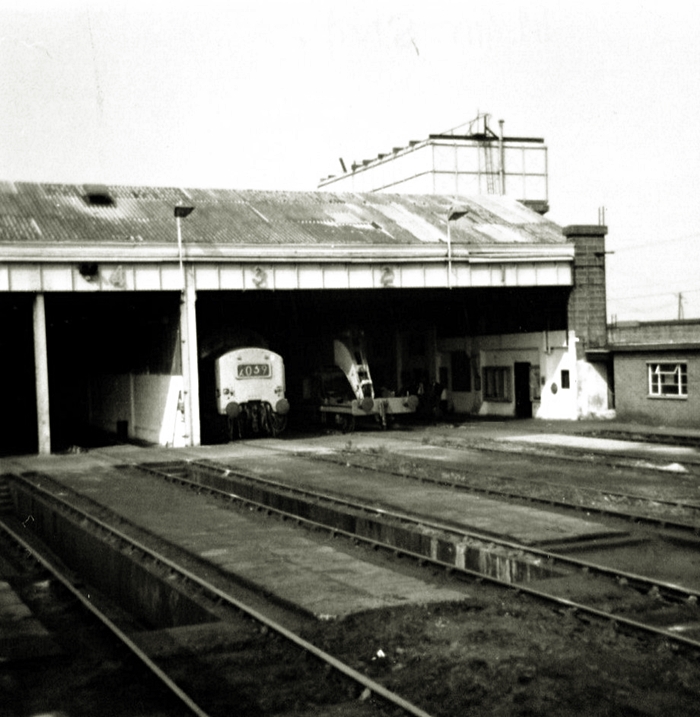 A Class 37, bearing original headcode box, is seen stabled on road No. 3 of the former engine shed. Alongside, on road No. 2, is a breakdown crane. © Roger Goodrum