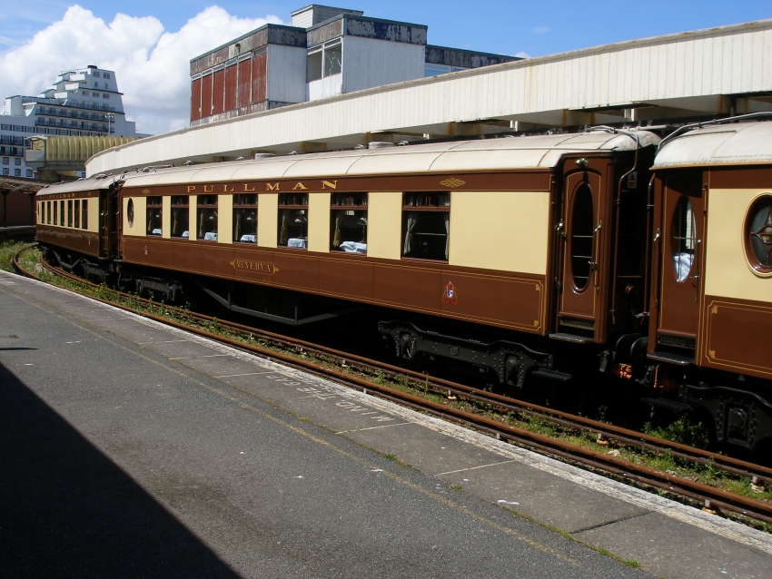 "Minerva", as pictured above at Folkestone Harbour, now rests on Gresley-design bogies. Originally completed in December 1927 as a Kitchen Car, the carriage has since been transformed into a Pullman Parlour First, complete with air-braking. © David Glasspool Collection