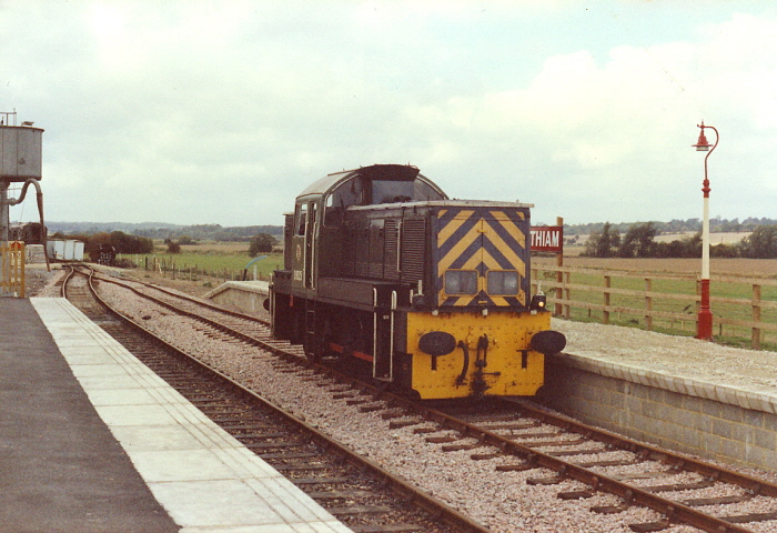 Class 14 shunter No. D9525 (BR No. 14029) was hauling one of two trains on this day, and is seen running