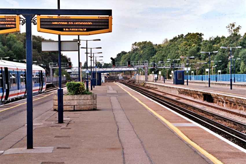Electronic destination displays arrived in 1999, replacing the television screens and digital clocks installed by Network SouthEast. Behind the blue palisade fencing on the far right is land which formerly made up part of the engine shed site, which closed as long ago as 1926. © David Glasspool