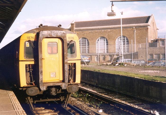 Part of the redundant dock platform is on the right of this view and had recently received perimeter fencing. The station building resides at forty-five degrees to the platforms. 4 Cig No. 1876 had been allocated to the depot at Ramsgate since 14th May 1993, having previously been based at Eastleigh. © David Glasspool