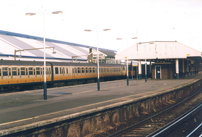 A view across the station from platform 2 gives evidence of the signal box. It is invariably obscured by rolling stock, parked in the adjacent sidings. Despite modernisation during the Kent Coast Electrification, the cabin still had control over the yard. © David Glasspool