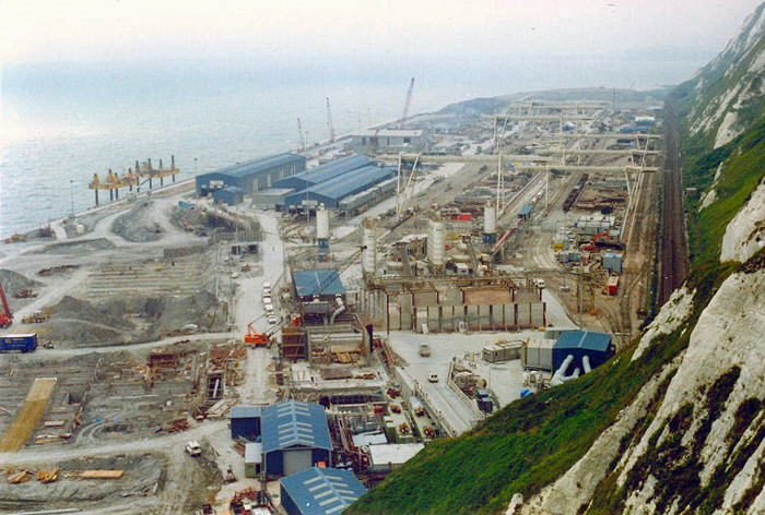 Known today as “Samphire Hoe”, a nature reserve set below the famous White Cliffs of Dover, catering for walkers and anglers all year round, this is a site which can trace its first association with the Channel Tunnel concept back nearly 140 years. The nature reserve, which covers an area of 74 acres, is situated upon a platform, nearly a mile in length, jutting out into the English Channel. Formed largely by the waste spoil excavated during the boring of the Channel Tunnel, the area is owned by "Eurotunnel", and was opened to the public on 17th July 1997.