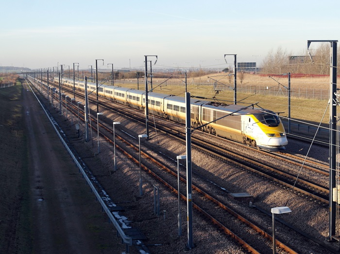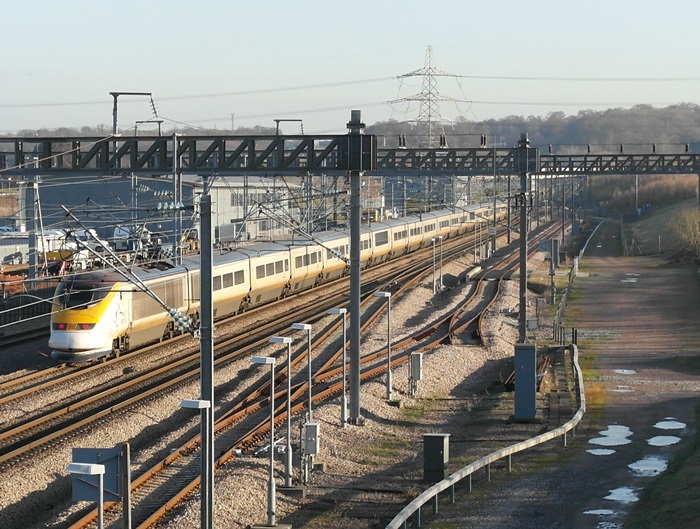 The 13:31 service to Gare du Nord speeds over the eastern connection between the main line and "down" loop. The train was due to arrive in Paris at 15:47 GMT (16:47 CET). © David Glasspool