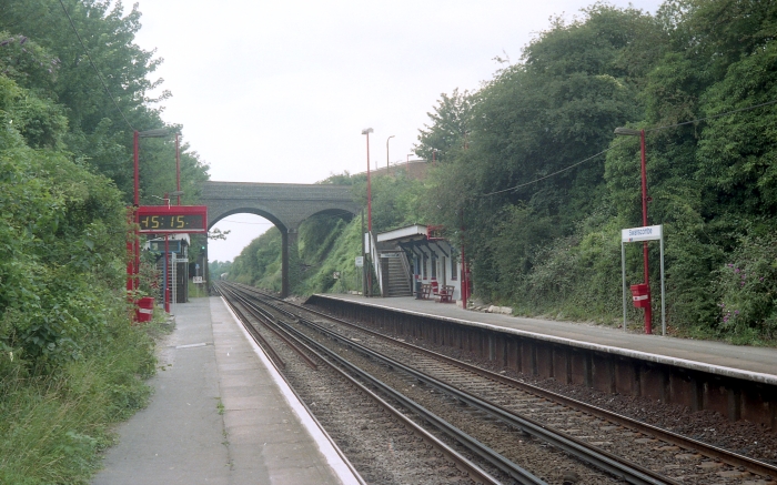 Initial alterations under British Railways merely included the replacement of the SR's "Target" name signs with "Sausage" Totems, but beyond this and other minor cosmetic alterations, this station very much remained the same as when opened in 1930. By the summer 1978 timetable, the "Halt" sufffix had been dropped from the nameboards, but the largest wave of changes were yet to come. In about 1995, in a bid to update the station, a ticket office was commissioned on the High Street, beside the footpath giving access to the "up" platform. This was a pitched-roof design of brown brick construction, a smaller version of those structures which had previously come into use at Lee and Kidbrooke. At this time, both timber waiting shelters on the platforms were flattened and replaced by much smaller glazed structures. Finally, in early 2013, both platforms were extended at their eastern ends by 140-feet, using concrete components.