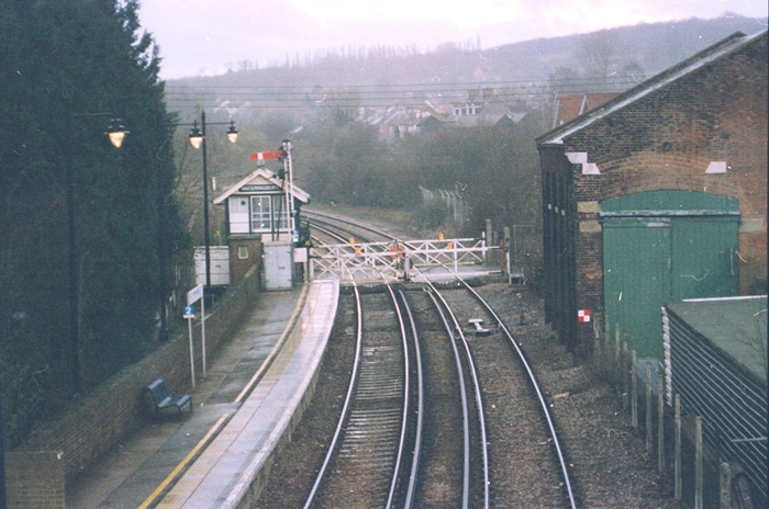 The station changed little over the years, although services to and from the North Kent Line were possible from 1856 onwards after an extension from Strood to Maidstone (SER) was opened. With the advent of electrification between these two locations on 2nd July 1939, most of the services were steam-powered push-pull between Maidstone, Paddock Wood and Tonbridge, all places of which connections could be made with main line trains. As part of the Kent Coast Electrification Scheme, installation of third rail along the Medway Valley began in 1960. It was deemed that now was the time to provide Wateringbury with a footbridge, in light of the hazards of crossing the line with third rail in close proximity. The footbridge was no architectural gem - in fact, it was plain and boring to the point of ugliness, emphasised somewhat by the splendour of the adjacent gabled station buildings. The Medway Valley Line became ''live'' on 12th June 1961, but goods traffic at the station lasted until at least 1963. For many years after the demise of steam, the route still had much charm, not only because the original station structures remained, but also due to the retention of semaphore signals. However, a line re-signalling programme got underway in earnest in December 2004 and by October of the following year, colour lights were controlling the line.