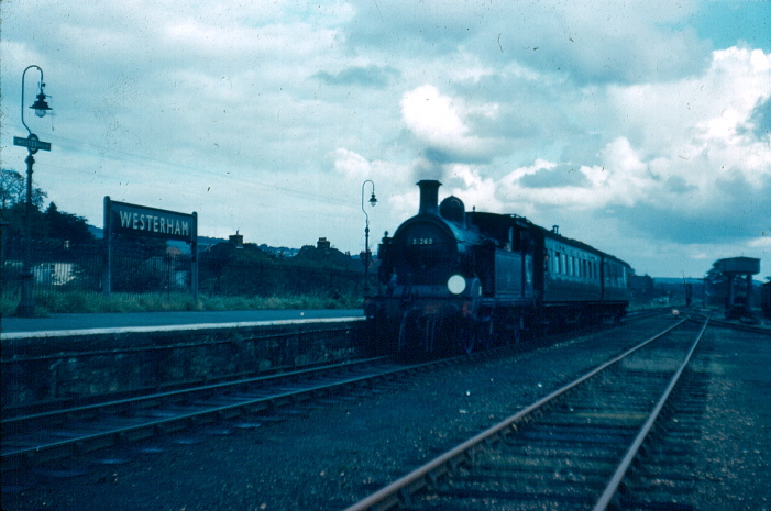 The February 1956-approved £45,000,000 Kent Coast Electrification (£777,000,000 at today’s prices) would result in the branch becoming an isolated steam-operated appendix of a modernised main line. On 12th June 1961, scheduled electric services commenced via the ex-SER route to Dover (although the full electric timetable did not commence until the 18th of the following year), and the closure of the Paddock Wood to Hawkhurst branch coincided with this. Despite this, the Westerham line continued to operate, but the end was nigh. Reportedly, the branch was creating a total loss of £26,000 (approximately £430,232 at 2007 prices) per year for British Rail, and with hints of a new London Orbital motorway requiring much of the track bed site, the line was doomed. The final day of passenger operation was on 28th October 1961, and was probably the line's busiest since the original opening eighty years previously. During the last day, ''H'' Class No. 31518 operated the morning push-pull services along the line, whilst tender engines in the form of ex-SE&CR D1 Class No. 31739, and ex-SR Q1 Class No. 33029, appeared in the afternoon hauling ''main line'' stock.