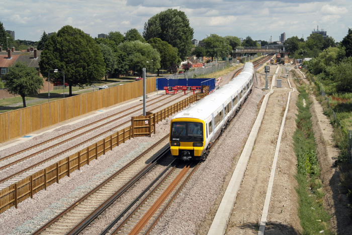 The entrance to Plumstead Tunnel can just be seen in the background of this westward view. The footbridge in view, complete with ramps, came into use earlier in the year, replacing a previous structure which did not offer a step-free course across the line. © David Glasspool