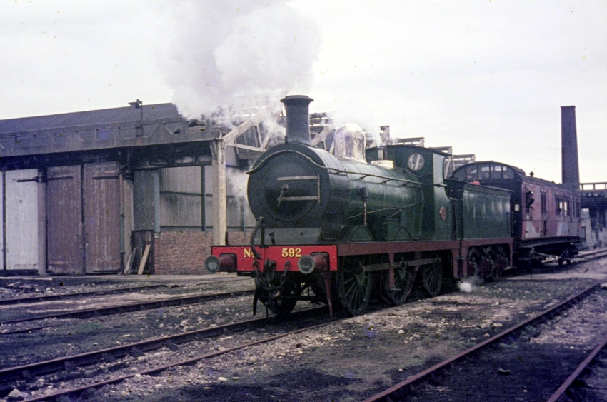 In the foreground is the front of ex-SE&CR "C" Class No. 592; in the background is "O1" Class No. 65, behind which is Pullman car "Phyllis". © David Glasspool Collection