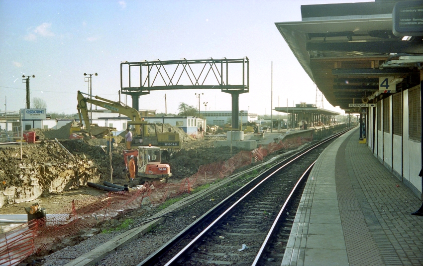 On 20th October 1993, the start of work on Ashford International station was formally marked when the then MP for the town, Sir Keith Speed, dug the first hole using a mechanical digger supplied by contractor Osborne of Chichester (ref: The Railway Magazine, December 1993). This was for the first phase of the scheme, which involved the aforementioned £30 million of track and signalling works. The second phase, which included the construction of the terminal buildings, would only start when a private sector development partner had been chosen (ref: The Railway Magazine, December 1993).
