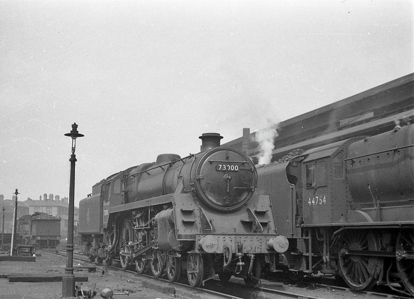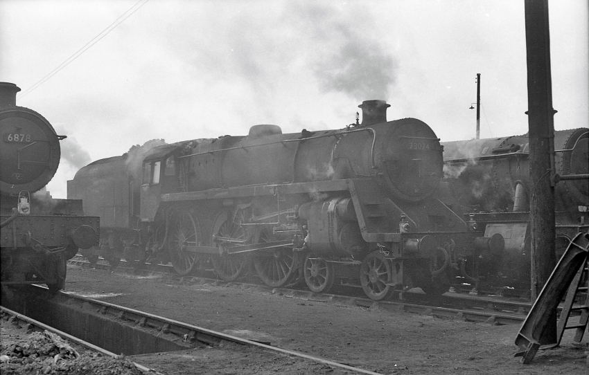 A well-weathered No. 73074 is seen flanked by a couple of Western Region engines, that on the left being No. 6878 "Longford Grange", the latter of which was withdrawn in the November. The engine on the right is possibly another Grange or Hall. In November of the previous year, No. 73074 was listed as being allocated to Nine Elms (70A). © David Glasspool Collection