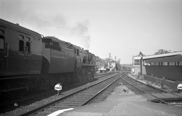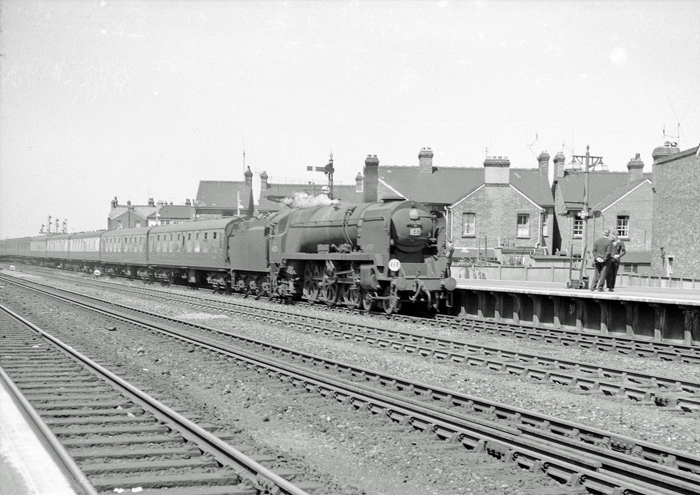 No. 34024 ''Tamar Valley'' is seen departing Brockenhurst for London in 1964. In the background can be seen the ex-LSWR ''East Box'' of 1880s origin whilst, just to the right, can be seen its successor. The latter came into use in November 1964. No. 34024 entered service in February 1946 as 21C124, being renumbered to 34024 in June 1948. Rebuilt in February 1961, it was another engine which made it to the end of Southern steam. It had the distinction of fronting the last ''down'' steam-hauled ''Bournemouth Belle'' on 5th July 1967. The engine was scrapped at John Cashmore's, Newport, in 1968. © David Glasspool Collection
