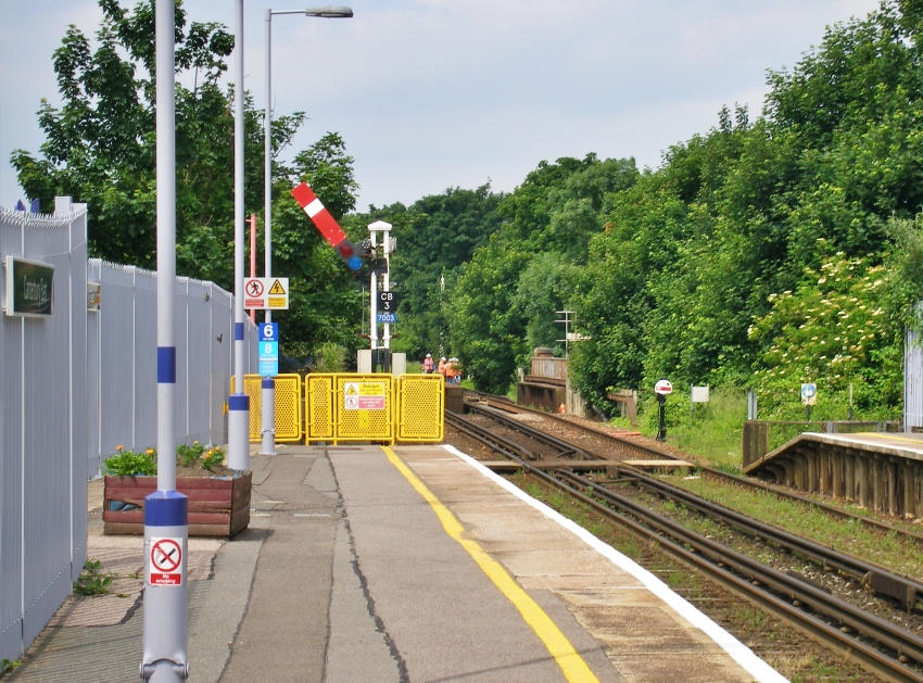 A London-bound view shows the main building on the "down" side, which was built to a style similar as those at the first Bromley and Dover Priory stations. The "second-hand" canopies from the ill-fated Lullingstone station remain, but their corrugated metal valances were replaced by more intricate types during a 1988 station refurbishment. © David Glasspool