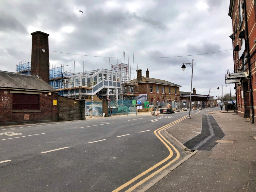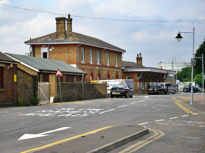 The main "down" side buildings retain a smart façade, neat brickwork, and a restored canopy, as a result of the restoration work which took place during 1988. Of note on the ground floor are the trademark LC&DR arched orange window frames, which are also readily viewable down the line at Faversham. © David Glasspool