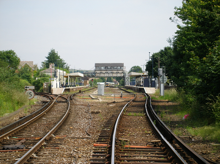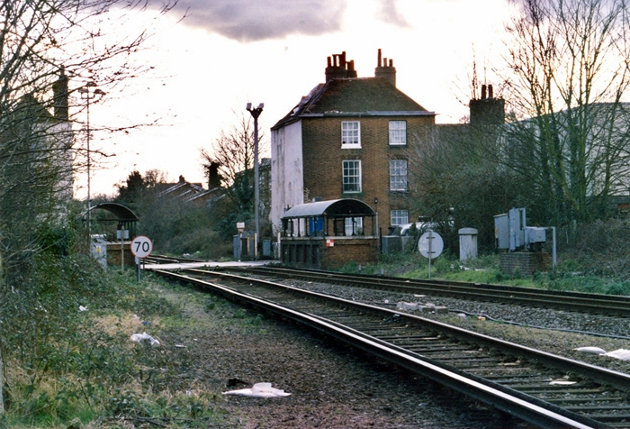 At the Ashford end of the station is a level crossing, the subways of which were evidently built by the railway company. The tracks begin slewing towards the platforms here - sets of points were formerly located here when the two through lines were still in situ. © David Glasspool