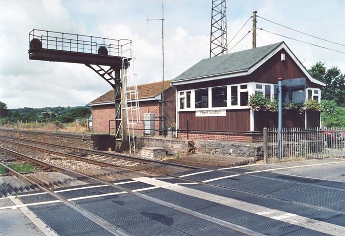 Single-track working east and west of Chard Junction commenced on 7th May and 11th June 1967 respectively, but a loop was retained at the former station site to allow trains to pass. The LSWR signal box was also kept in use to operate the loop and control the level crossing gates, which at that time were still manually operated. The quaint signal cabin of the branch line had earlier gone out of use on 28th July 1964, having operated in the capacity of ground frame since 5th March 1935. The traditional level crossing gates on the main line were replaced by automatic half barriers on 14th January 1968, controlled from the LSWR cabin. At this time, the main ‘’up’’ side station building still remained, although devoid of canopy, as did the goods shed. Sadly, most of the site was levelled during September 1982, which included the LSWR signal box. The latter went out of use on 11th of that month and was subsequently replaced by a new-build panel-operated cabin. Like its predecessor, this was positioned adjacent to the level crossing, on the ‘’up’’ side of the line and came into use on 11th December 1982. The goods shed was still standing a decade later, but this, too, has since disappeared.
